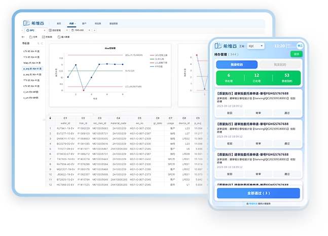 一款专为先进制造企业打造的过程监控与质量管理工具,,系统直连工业设备,,自动采集产线数据并实时生成控制图(如X-Bar R图、、、P-NP图、、C图、、、、U图),,,替代传统人工记录与离线分析模式,,,大幅提升效率。。。当关键参数偏离预设范围时,,,系统将自动触发分级报警机制,,,帮助快速定位异常环节,,,缩短问题响应时间,,降低不良品风险。。。同时,,支持多维度分析,,,,实时展示核心指标。。
